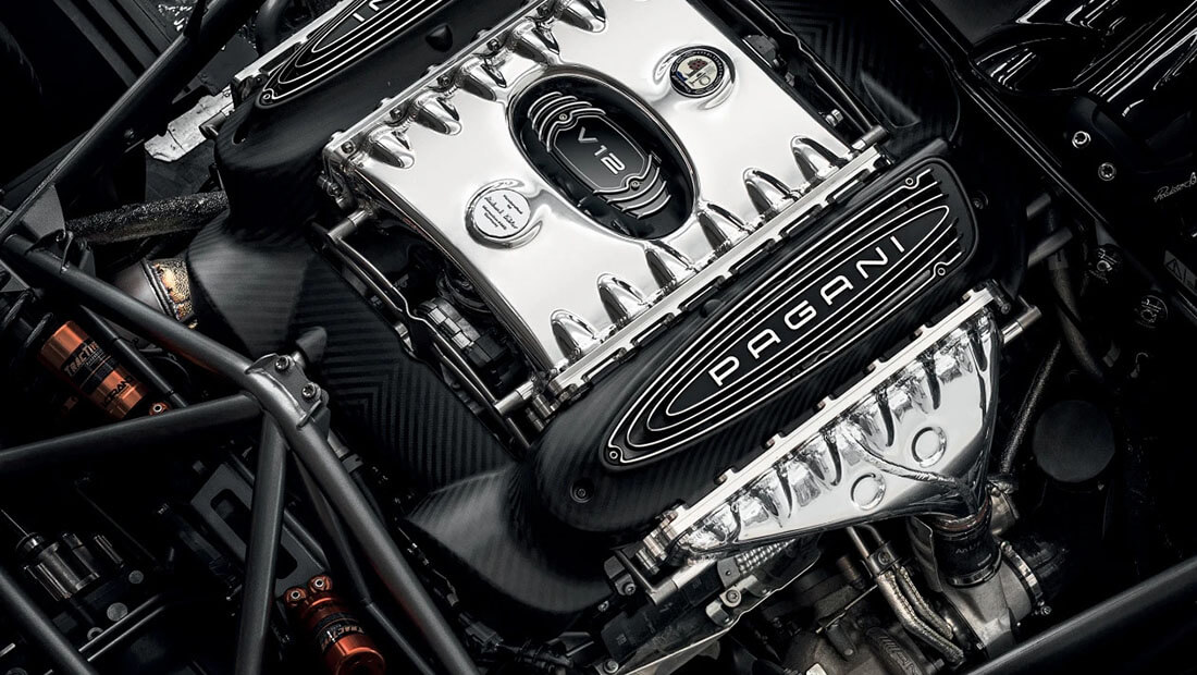 موتور محرک هوایرا با موتور وسط که توسط یک زیرفریم کروم-مولی پوشانده شده و توسط رشتههایی از فیبر کربن احاطه شده است، یک موتور ۶ لیتری V-12 توئین توربو با منبع 60 درجه AMG است و قدرت خروجی آن تکرار میشود: 690 اسب بخار و 73 پوند. – فوت گشتاور (موتور به طور خاص برای این خودرو ساخته شده است و از هیچ مدل AMG جدا نشده است. با این حال، انتظار معامله مشابهی با هیچ سازنده دیگری نداشته باشید، همانطور که رئیس AMG، اولا کالنیوس اخیراً به ما گفته است که این هماهنگی با پاگانی انجام شده است. طبیعت منحصر به فرد.) دو رادیاتور کناری، خنک کننده های اینترکولر را تغذیه می کنند، که در بالای سر سیلندرها قرار گرفته اند و از پوشش هایی استفاده می کنند که به عنوان مخزن سرریز برای خنک کننده موتور عمل می کنند. روانکاری از طریق سیستم خشک کن انجام می شود.